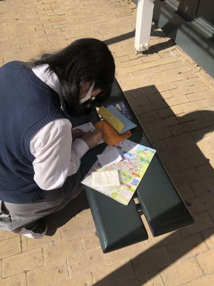 楽しそうにしています。手紙を書いているようにも思いますが…。記念に出すといいと思います。