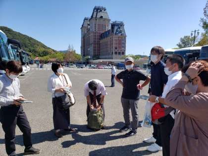全員無事にバスに集合することが出来ました。次は博多に向けて出発です。その前に,先生方も打ち合わせです。