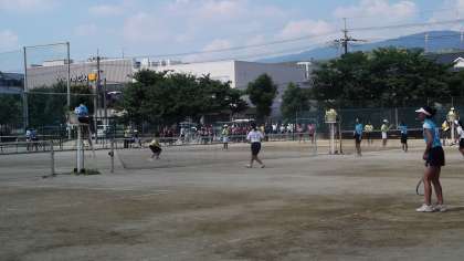 本校は校地が広く設備も比較的整っているため、春季・秋季大会も含めて多くの種目の会場校となっています。ちなみに今日は女子ソフトテニス個人(ペア)ゾーン予選、バドミントン団体予選、サッカー部1回戦などが行われています。