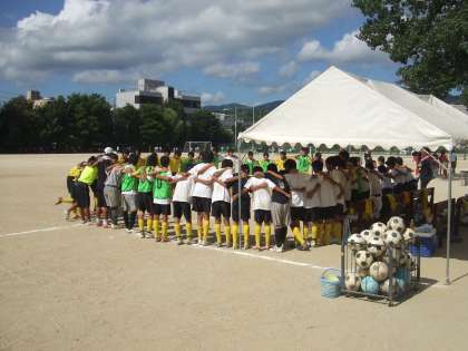 7/17(土)本校グランドでサッカー部の夏季大会が行われ、本校は2回戦から登場しました。春季大会全市ベスト4のサッカー部は陶化中学校に大苦戦、何とか後半ロスタイムに同点に追いつき、PK戦で何とか勝利をおさめました。
