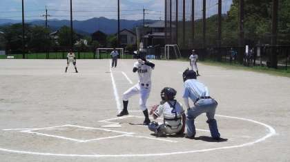 7/17(土)岩倉東公園において本校野球部は夏季大会2回戦を下鴨中学校と対戦しました。35度の猛暑日13時試合開始という厳しい条件のもと、もうダメだ!と思えるようなピンチを何度もしのぎきり2−1で大接戦を制しました。