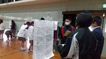本日の4限・5限と2年生の総合的な学習の発表会「桂 輝翔会」が行われました。形式はポスターセッションで,今までの学習の中で「10年後の世界はどのようになっているのか」を創造し,発表しました。単に空想を語るだけでなく,過去を学び,現在を見据え考え,「これからを生きる」主体者として「どのような未来を創造するのか」という壮大なテーマのもと,発表会が行われました。