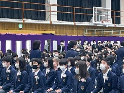最後は担任を先頭に、退場となりました。その後、生徒は教室で最後の学活を行いました。