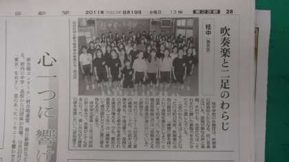 8/19付けの朝日新聞朝刊の28面に本校吹奏楽部(合唱部)の活動が紹介されました。