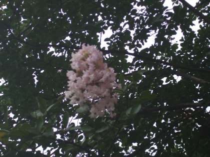 (写真は午前11時に撮影した校門付近のひまわりと中庭のさるすべりの花が咲いている様子です。さるすべりの花がピンク色でこんなにきれいに咲くのだということを初めて知りました。)