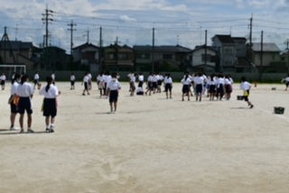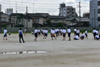 昨日の学活で1年生はグランドでレクリエーションを行っていました。競技は「しっぽ取り」です。敵にタオルをとられないように走り回る生徒。自分のクラスの生徒を応援する生徒。クラスが少しずつ団結していく様子が良かったです。