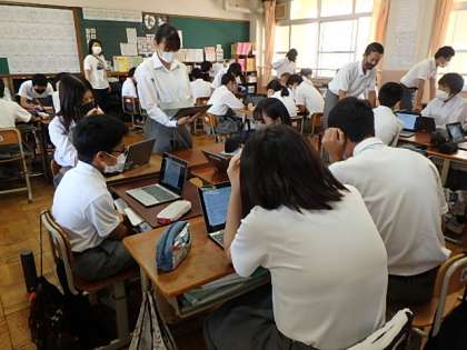 昨日,2年生は「総合的な学習の時間」で自分の興味のある仕事や調べてみたい仕事についてミニ発表会を行いました。タブレットを使って,同じ班の人に情報をシェアして,発表をします。タブレット手に持ちながら発表するなど,うまく使いこなしている人が多く見られました。また,発表に対し手を挙げて質問をするなど,コミュニケーションもうまくとれていました。