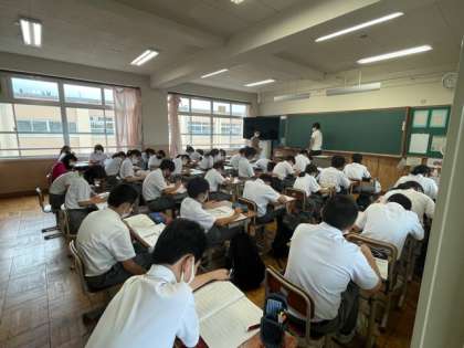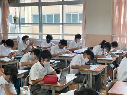 2日(月)〜4日(水)まで学習会が行われています。1年生は参加者も多く,2教室で開催していました。参加者は一生懸命に勉強している様子でした。中にはタブレットを使って学習している生徒もいました。