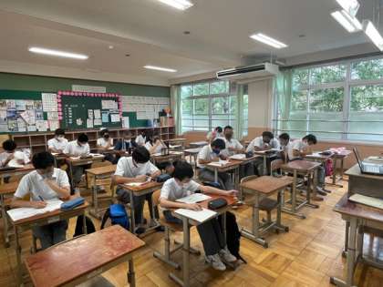 2日(月)〜4日(水)まで学習会が行われています。3年生も参加者は少ないですが,参加している生徒は熱心に学習に取り組んでいます。中には分厚い問題集を持参し,学習に励んでいる生徒もいました。