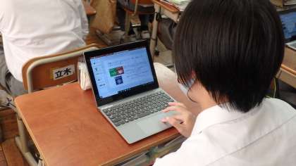 2年 桂輝翔会に向けて タブレットでPowerPoint