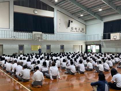 3人の先生方が修学旅行に向けて話をしてくれました。今回の修学旅行で経験できる学びや絆をしっかりと深めてきてほしいと思います。そのためにも準備をしっかりと行い,忘れ物の無いようにお願いします。金曜日には持ち物の変更プリント(保険証コピー可)もでましたので,気をつけて下さい。