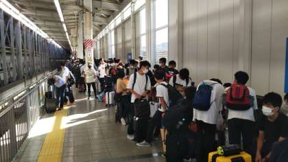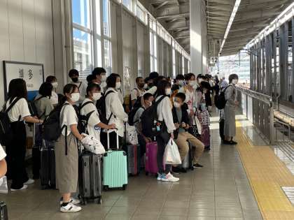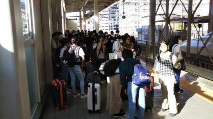 博多駅に向かっていたバスは無事に博多駅に到着し,新幹線に乗り込みました。