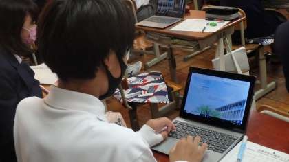 そして本日,教室でタブレットを活用し,高校調べを行いました。