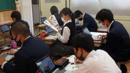 タブレットで高校を調べる中で,「この高校,意外と近いねんなぁ。」「ここは普通科だけじゃないんやなぁ。」とそれぞれ発見があったようです。
