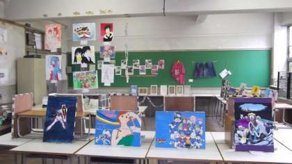 本校正門の絵は遠くからはわかりませんが、油絵です。