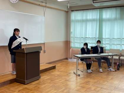今日は新生徒会本部を決める立会演説会が行われました。本来ならば,全校生徒の前で話をしてもらうのですが,今回も残念ながらTeamsにて発表となりました。どの候補者,応援弁士もまじめに,工夫を凝らしながら一生懸命に話をしてくれました。明日の朝には校門を入ったところに掲示されます。新しい生徒会本部の方々に大いに期待しています。