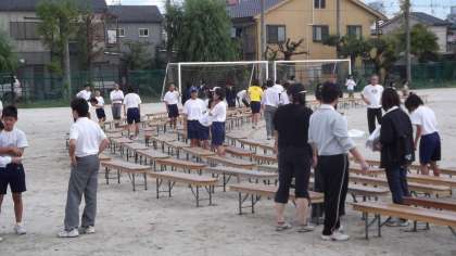10/6(木)本当は体育大会でしたが・・・。6限終了後から係生徒・教職員で明日の準備を行いました。2時間の予定でしたが、生徒諸君が本当によく頑張ってくれて、1時間あまりで終了しました。