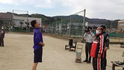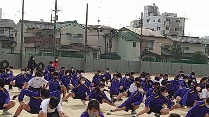 学校あいさつ,生徒会長のあいさつ,選手宣誓,準備運動をして始めます。