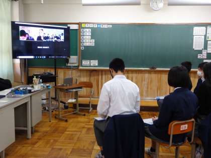 西総合の参加者が本校の卒業生なので昨年まで本校の1組で一緒に過ごしていたこともあり,最後のあいさつの場面では「カメラ越しとはいえ,久しぶりに元気そうな先輩の顔を見られて良かったです。」と話してくれていました。