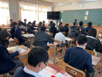 本日は1・2年生 総括テスト4の2日目です。今日も一生懸命に問題を解いています。始まるまでの空き時間は最終確認をしている生徒が多くいます。大事なことですね。(写真は2年生の様子)