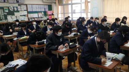 1・2年生もあと少しとなりました。最後まで,授業に真剣に取り組んでいます。