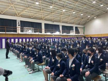温かい日差しの中,第74回卒業証書授与式が行われました。緊張した面持ちの中,入場してきます。