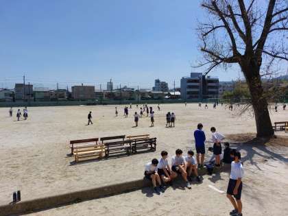 25度を超える夏日の今日でしたが,多くの生徒が元気よくグランドで遊んでいました。