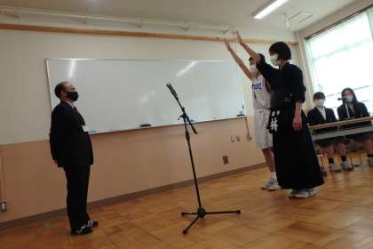 昨日,部活動激励会が行われました。選手宣誓から始まり,体育系・文化系全部活の部長が決意表明を行いました。