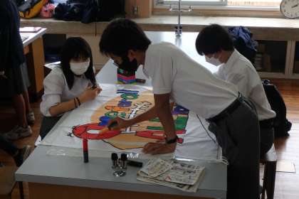 今週,各クラスの学級旗制作が行われています。どのクラスも個性豊かなデザインが選ばれ,今年はポスカだけではなく,色鉛筆も使うなど,とても工夫を凝らして仲良く制作してくれています。出来上がりが楽しみ,楽しみ…。