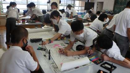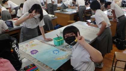 3年生は合唱コンクールに向けて、めくりの作成を行っています。