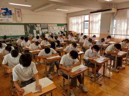 ※写真は、1年、2年、3年それぞれの国語のテストの様子