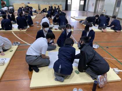 各クラスで順位決めをしたうえで、同順位ごとに集まってクラス対抗戦。第2体育館に敷かれたタタミの上で、皆「一枚でも多く取ってクラスで金賞!」を目指し、楽しんで盛り上がりながら、札を睨みつけていました。今年けっこう取れた人は来年さらに、取れなくて悔しい思いをした人は来年こそたくさん覚えて、クラスに貢献してください。