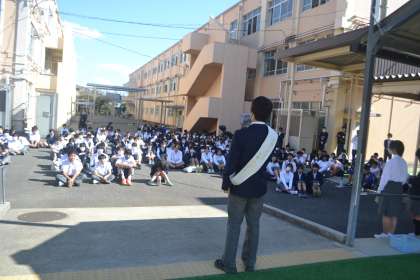 お昼休みを使って生徒会選挙の小演説会が実施されました。今日は3日間あるうちの最終日。どの学年も学年ごとの演説会場に全員集まり、熱心に演説を聴いていました。さあ、生徒の自主的活動を推進する、次の生徒会役員を皆でしっかり選挙しましょう。