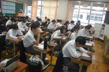 候補者たちの演説を聞いたあとは、教室にもどって真剣な雰囲気の中で投票が行われました。誰が当選しても、皆で協力して桂中をもりあげていきましょう。