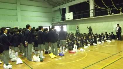 3年生教員代表の感想や明日へのお願いのことばのあと、最後に全員でもう一度「3月9日」を大きな声で合唱しました。