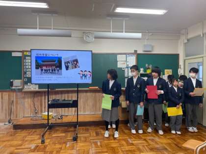 1組では11月に行った校外学習についての事後学習を生活の時間に行っていました。その集大成として教職員の方を招いて発表会をしました。生徒たちは緊張しながらも堂々とした姿で発表をしてくれました。やりきることができて少し自信がついたようでした。