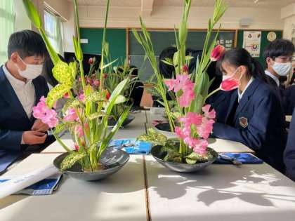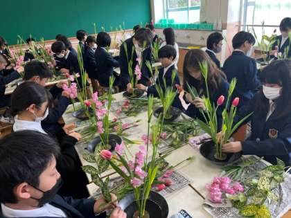 先週の金曜日、1年生は生け花体験を行いました。みんな想像力を膨らませながら立派な作品を作ってくれました。