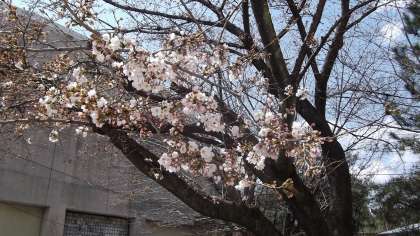 さて、あの猛烈な雨と風で、つぼみがふくらんでいた桜はどうなるのだろうと心配していましたが、昨日よりも開花が進み、またつぼみのふくらみ方も大きくなってきました。「ちらほろ咲き」というところでしょうか。