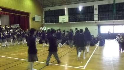 先に2・3年生が待機して1年生を迎える形で、吹奏楽部の演奏に合わせて1年生が入場しました。