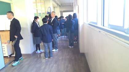 1年生の校舎案内の様子です。1組は3年生が中心になって1年生に説明してくれています。