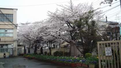 昨年11月、地域・PTA・生徒たち皆で協力して植栽した「学校ふれあい手づくり事業」の校門付近花壇のビオラはどんどん広がって色とりどりの花を増やしてくれていますし、チューリップももうまもなく花が咲きそうです。昨年のビオラ・チューリップ・桜の見事なコントラストを期待しています。