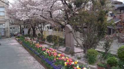 本来は卒業式・入学式で色とりどりの美しい花が咲き誇り、卒業生・新入生・保護者・ご来賓の方々にお披露目する予定であったものが、例年になく厳しい冬と4月に入ってもまだ肌寒い日が続いたため、花の開花が大幅に遅れてしまい、残念に思っておりましたが、ようやく皆さんで協力して植えた球根や種、苗が一斉に花を咲かせ始めています。本校関係者だけでなく、物集女街道を走る車・歩行者の皆さんにも楽しんでいただいています。