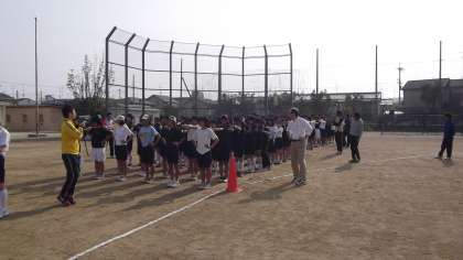 4/25(水)7:45〜グランドでは29日(日)に行われる京都市春季総合体育大会開会式の入場行進のための、事前練習が始まりました。桂中学校運動部の精鋭100名がほとんど遅刻もなしに、練習に取り組みました。たくさんの教員が朝早くから出勤してくれて、一緒に行進をしながら気がついたことを大きな声で指導しました。