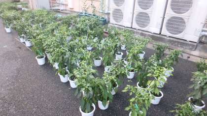 1年生の技術の授業で万願寺唐辛子を育てています。