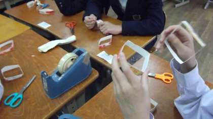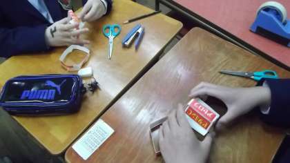 1組理科授業「牛乳紙パックでけんだまを作ろう」