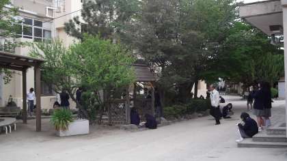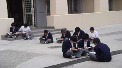 5限目、2年生は内科検診を行っていましたが、1ー2は美術の授業として校門・玄関付近でスケッチを行いました。