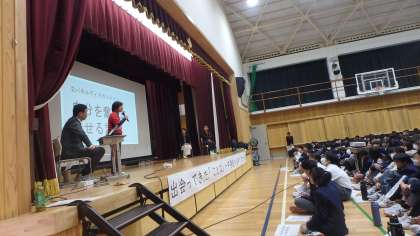 生徒だけでなく、教職員もゲストのお話に聞き入っていました。これらのことばがどのような意味だったのか、ぜひ、ご家庭で生徒たちに聞いてみてください。