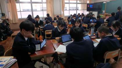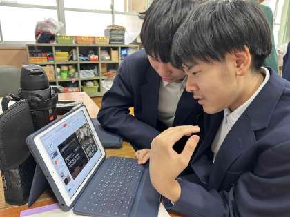 班ごとのプレゼンテーションに向けて,パワーポイントや台本を協力して作成しています。