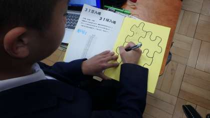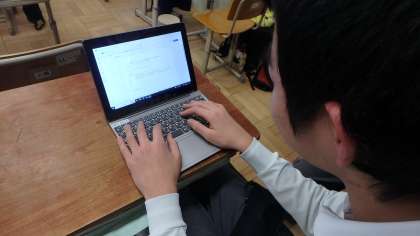 3年生の文集を作成している様子です。総合の授業で「3年間の思いを形にしよう」と取り組んでいます。