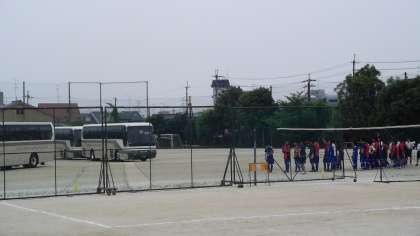 土曜日早朝にもかかわらず、本校教職員、部活動で登校していた1・2年生、教育委員会担当主事、そして練習試合で本校を訪れていた他校の生徒さんまでもが、グランドから見送っていただきました。